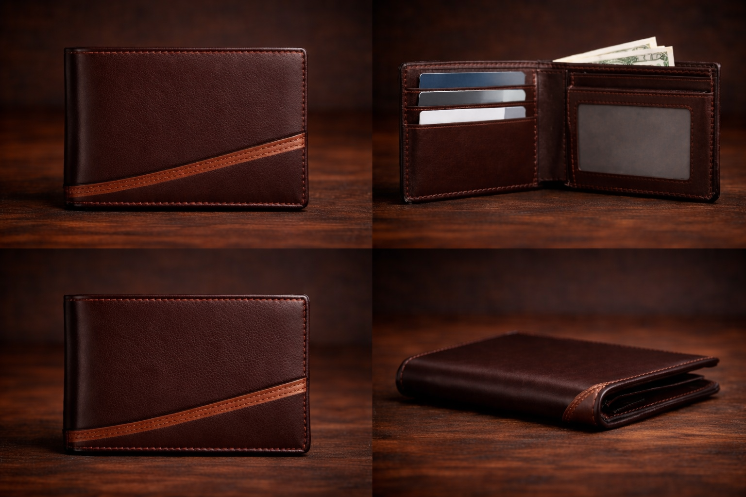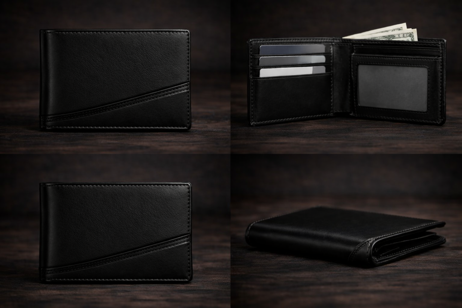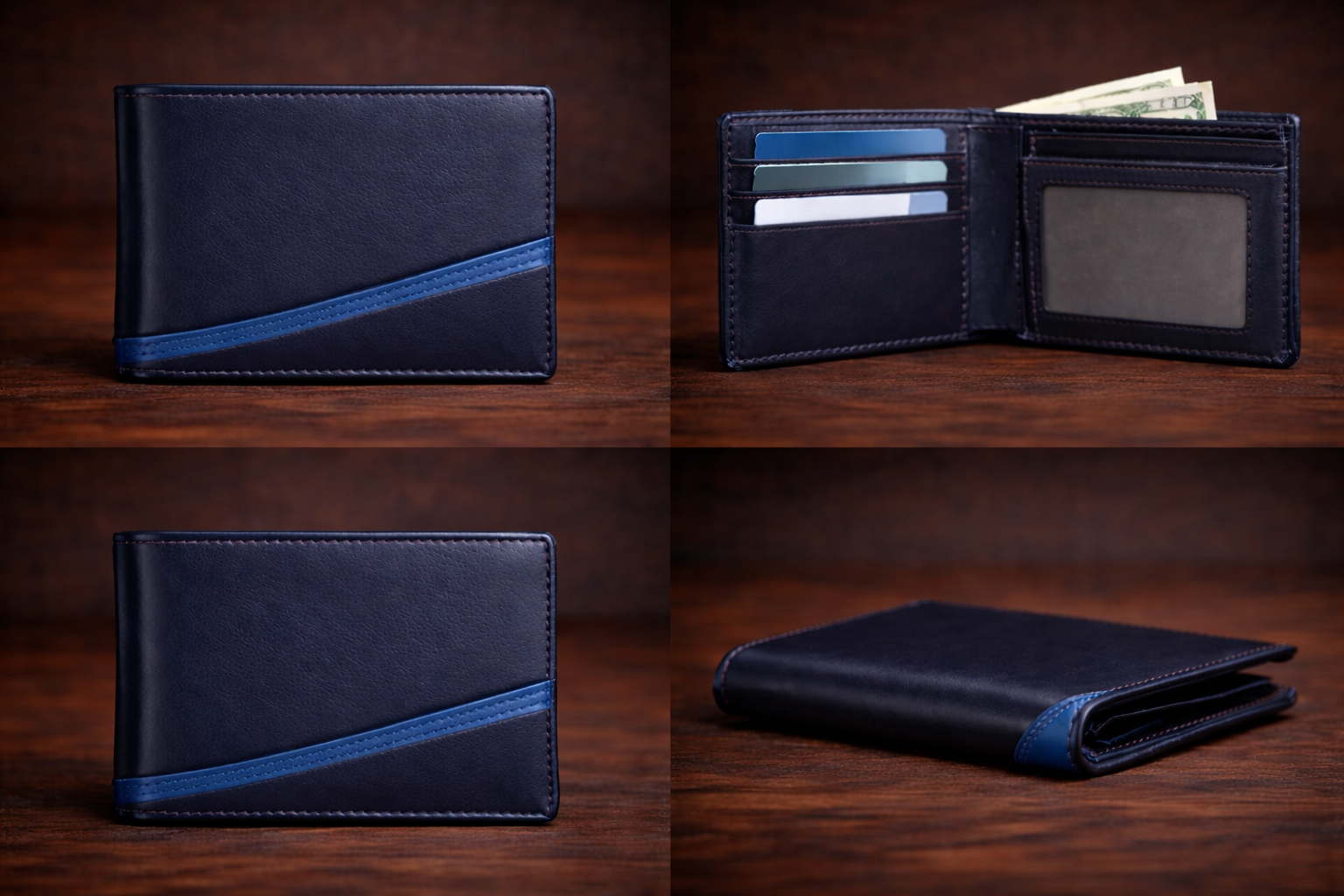 The wallet features multiple card slots, a spacious cash compartment, and a transparent ID window. Strong stitching and a smooth premium finish ensure long-lasting use and a refined feel.